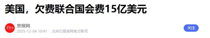 12月的联合国总部海纳策略,一边是中俄两国相继缴清2025年会费的务实之举,一边是美国累计15.86亿美元欠款的顽固拖延,全球多边机构的财政天平严重失衡。